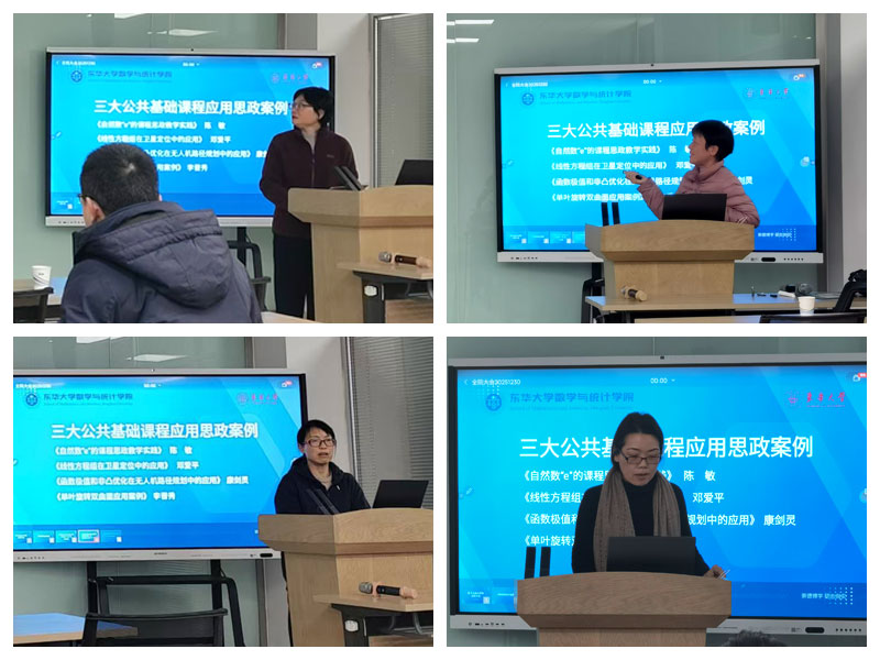活动期间,陈敏、邓爱平、康剑灵、李晋秀四位教师依次分享了优质案例,内容涵盖自然数“e”的课程思政实践、线性方程组在卫星定位中的应用、函数极值与非凸优化对无人机路径规划的助力、单叶旋转双曲面的应用等,实现了数学知识与家国科技、实践应用的深度融合。